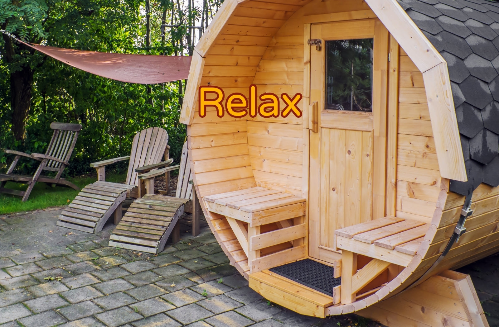 Traditional 4-Person Outdoor White Cedar Elation Barrel Schooner Sauna with Porch and Windows